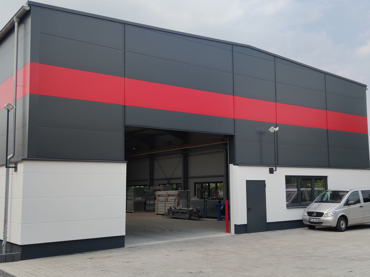 Die Bestandshalle wurde im Laufe der Jahre ständig modernisiert. Eckpunkte sind hier ein neuer Hallenboden, neue Krananlage und zuletzt ein neues Dach mit neuer Hallenheizung in 2024.